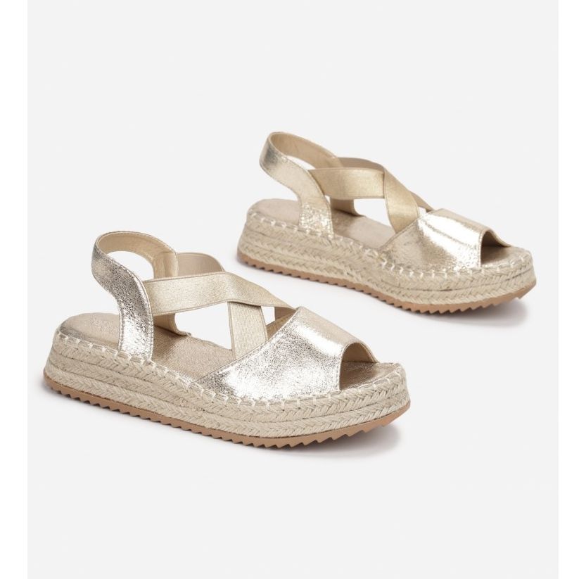 Descubra estilo e conforto únicos no verão com as sandálias Vices BL370-60 douradas em uma elegante cor dourada. Estas sandálias plataforma de 4 cm de altura são a escolha perfeita para mulheres que valorizam um calçado moderno e funcional. Decorados com tranças de juta, conferem leveza e originalidade a qualquer estilo de verão.