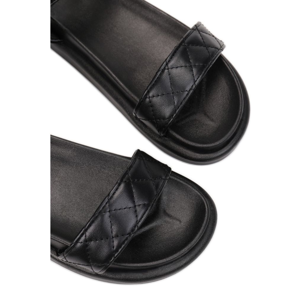 Os sapatos são fechados com um prático velcro, o que torna extremamente fácil calçá-los e tirá-los. Assentes numa sola plana com perfil, proporcionam conforto em qualquer superfície e a altura do salto de 3 cm torna-os adequados para o uso diário. Feitas em couro ecológico de alta qualidade, as sandálias não são apenas estéticas, mas também fáceis de manter, e a costura acolchoada acrescenta originalidade.