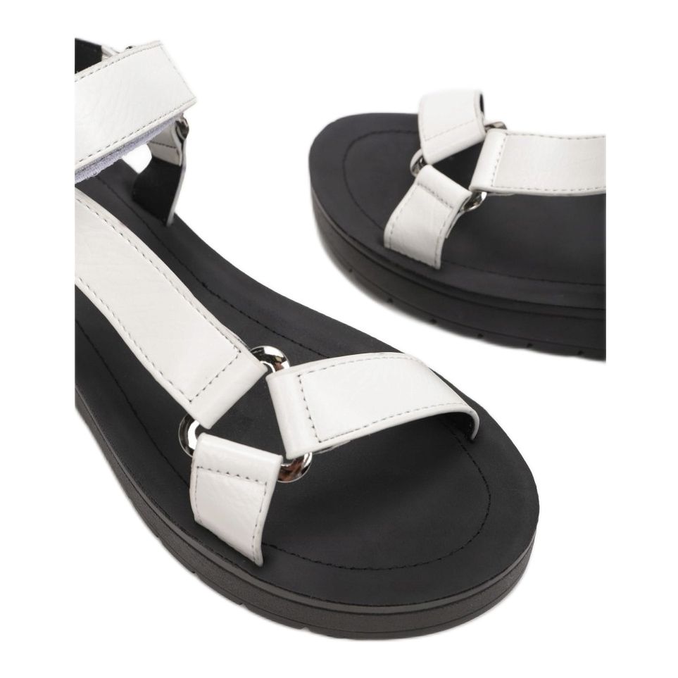 Fabricados em couro ecológico de alta qualidade, oferecem não só um visual moderno, mas também durabilidade. O material da sola é sintético, o que o torna leve e confortável de usar. Estas sandálias estão equipadas com um prático fecho de velcro que permite uma calçada rápida e fácil, adaptando-se à forma do pé.