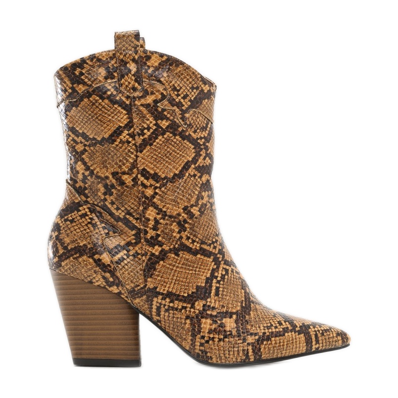 Descubra um estilo único com as botas de cowboy Vices 1585-49 em tons de marrom, amarelo e padrão multicolorido, que combinam perfeitamente com as últimas tendências de calçados. Confeccionados em couro ecológico, imitando pele de cobra, esses calçados não só impressionam pelo visual único, mas também oferecem conforto de uso.