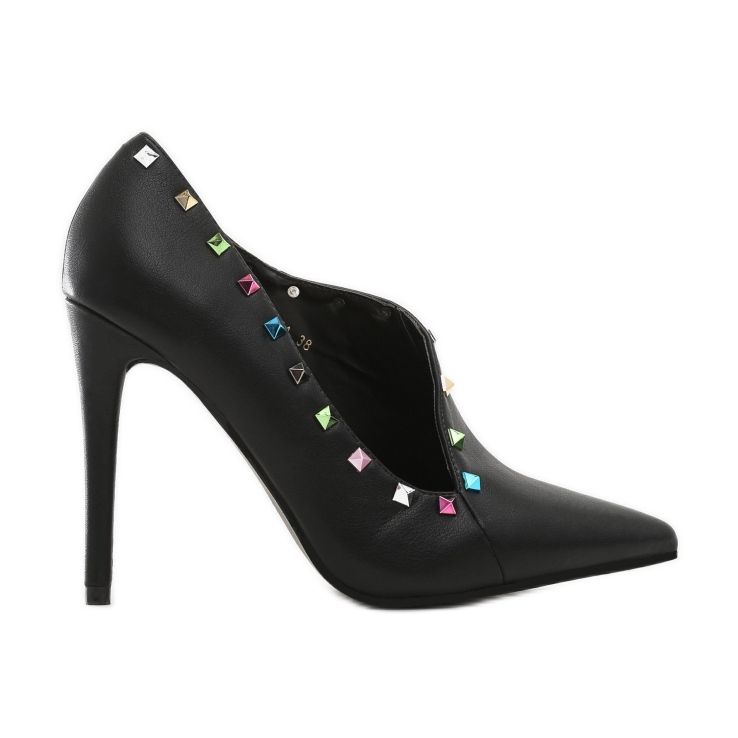 As bombas Vices 2092-1A se distinguem por uma ponta pontiaguda, o que acrescenta classe e elegância a elas. Graças à sola sintética, garantem não só durabilidade, mas também conforto de uso. O salto de 10,5 cm combinado com um estilo moderno faz com que estes sapatos modelem perfeitamente a figura e afinam as pernas.