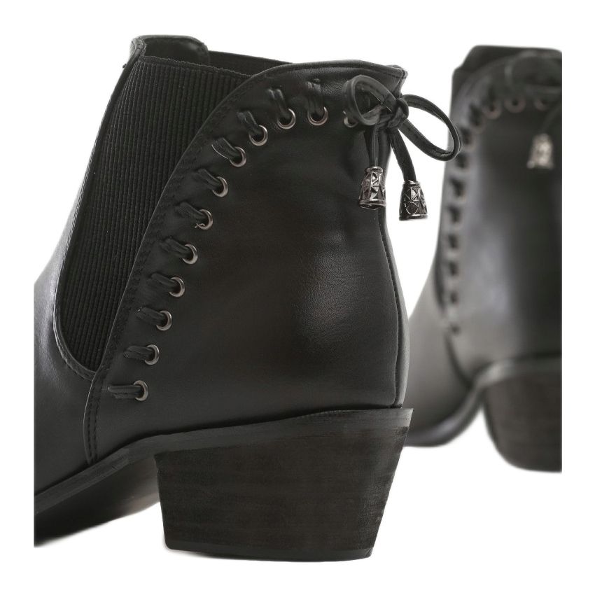 Os botins Vices caracterizam-se pelo salto plano com altura de 4,5 cm, o que garante estabilidade e conforto no uso. Elementos adicionais, como strass, conferem-lhes um caráter original e levemente rock. Com biqueira amendoada, essas botas acrescentam elegância e tornam cada pé único.