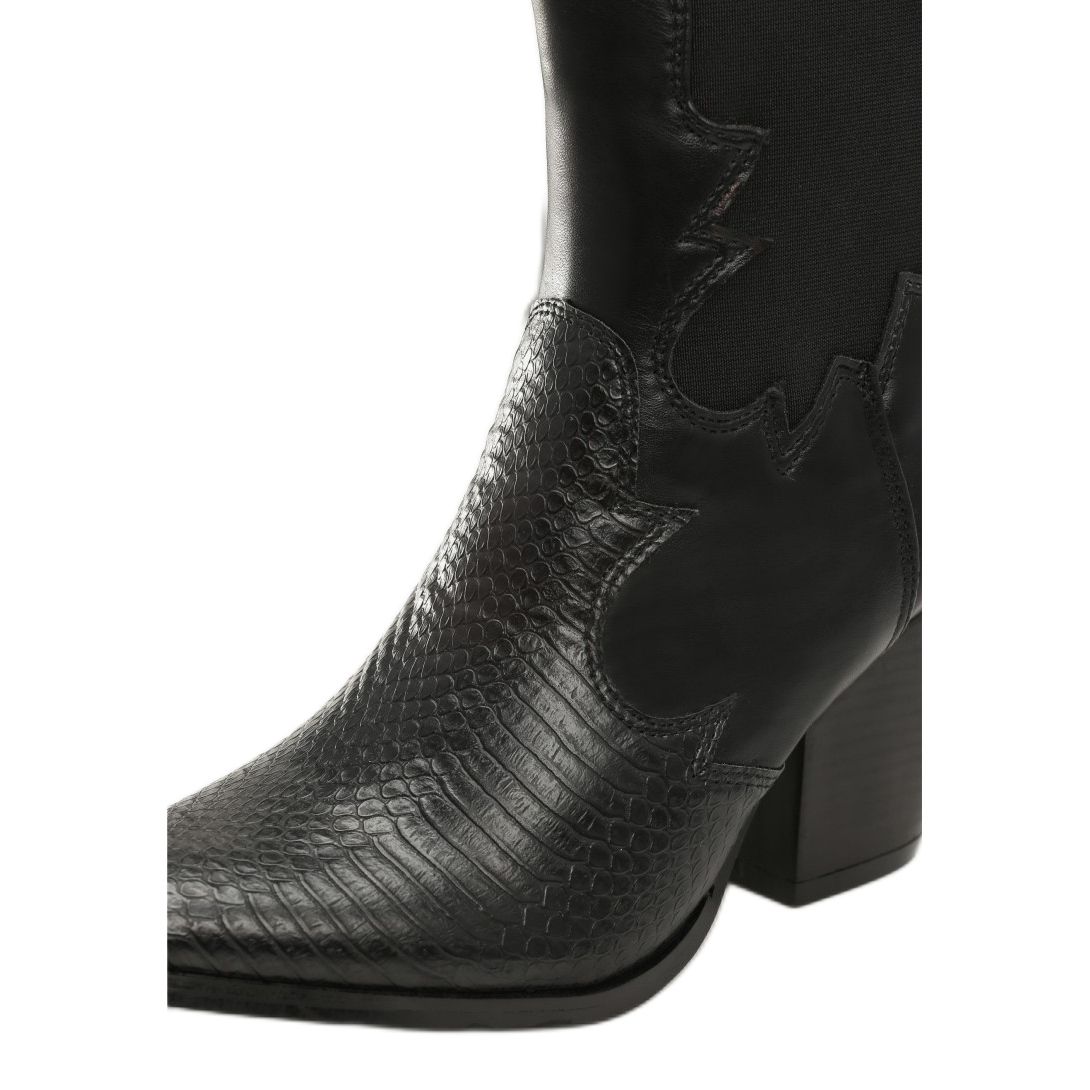 As botas de cowboy Vices distinguem-se pelo salto cónico de 8 cm de altura, que confere uma elegância subtil e ao mesmo tempo garante estabilidade. A ponta pontuda enfatiza seu formato original, tornando-os um complemento perfeito para estilos do dia a dia e mais sofisticados. Feitos de couro ecológico de alta qualidade, eles não são apenas visualmente atraentes, mas também ecologicamente corretos.