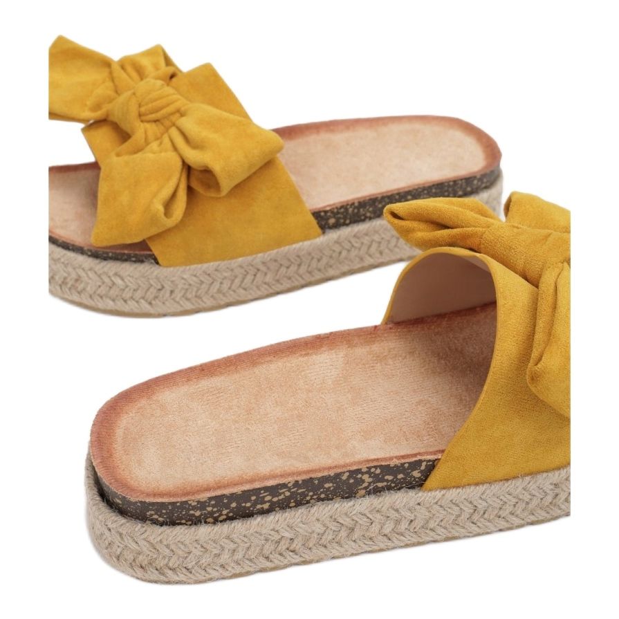 Esses chinelos casuais são confeccionados em couro sintético ecológico de alta qualidade, o que os torna duráveis e resistentes a danos. O acabamento em camurça confere-lhes um carácter único e a falta de biqueira cria uma sensação de leveza e liberdade. Além disso, decoradas com um laço sutil, agregam charme e feminilidade ao conjunto.