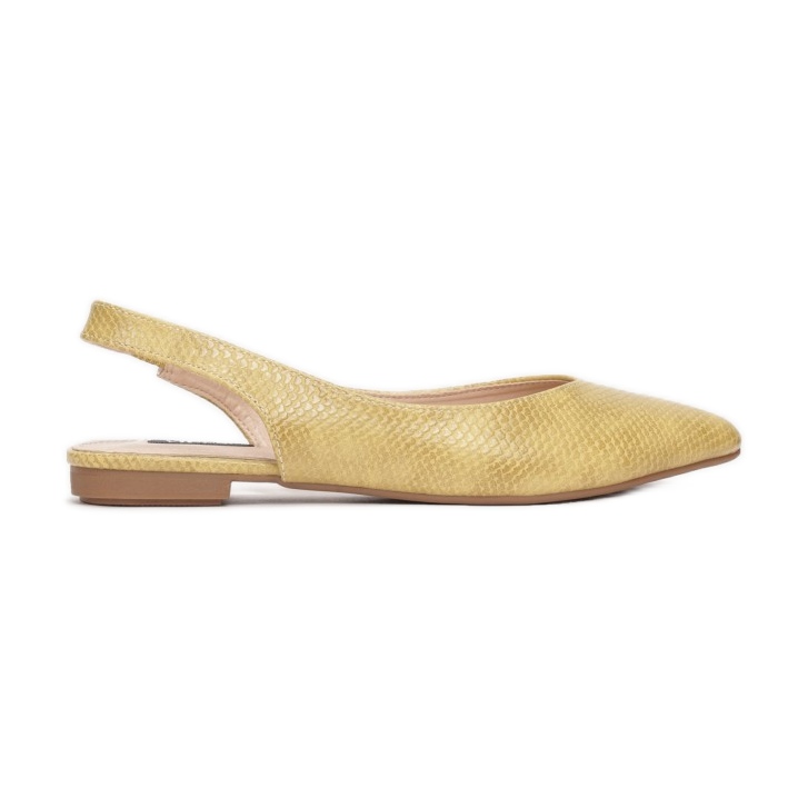 As sandálias têm um corte clássico que se adapta perfeitamente às últimas tendências. A cor amarela os torna expressivos e atraentes, tornando-os um complemento perfeito para estilos de verão. A palmilha em couro ecológico proporciona conforto adicional e a sola sintética de 1,5 cm de altura torna as sandálias estáveis e adequadas para o uso diário.