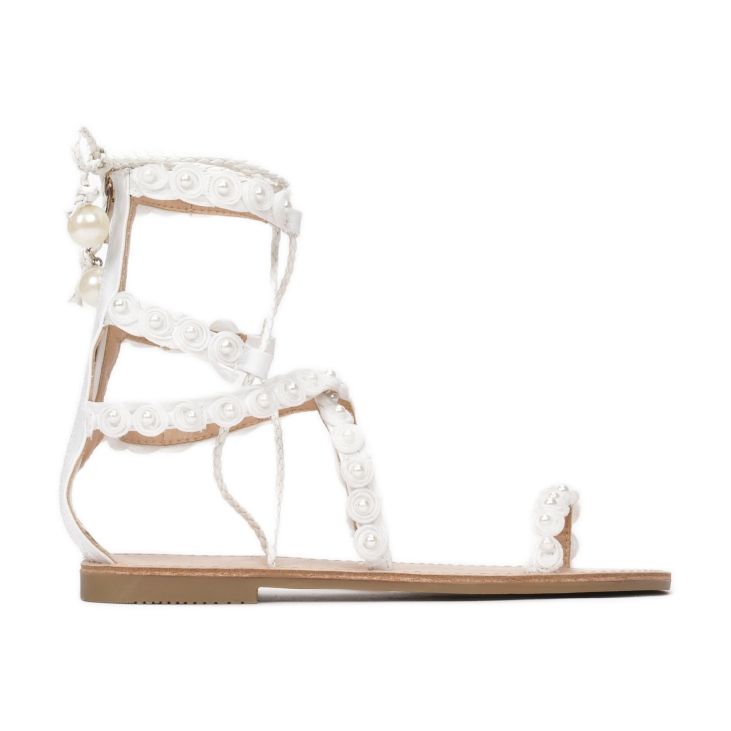 As sandálias são confeccionadas em couro ecológico de alta qualidade, o que garante durabilidade e facilidade de cuidado. A biqueira aberta e o salto plano de 1,0 cm garantem conforto durante todo o dia. Uma vantagem adicional são os strass que conferem aos sapatos um caráter estiloso.