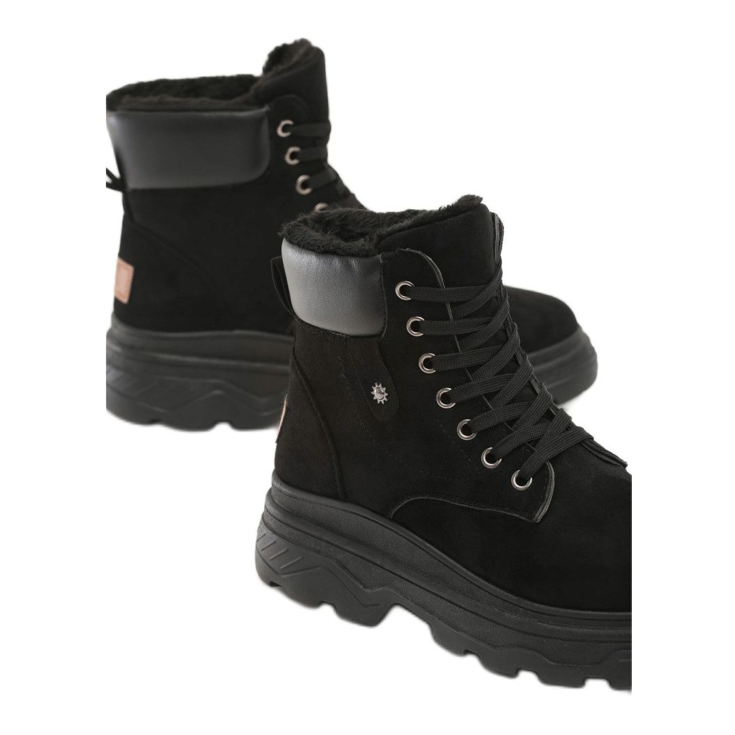 Descubra conforto e estilo em qualquer aventura com os sapatos femininos Vices 8485-38 com cadarço na cor preta. Estas botas da moda combinam funcionalidade e elegância, perfeitas tanto para a agitação da cidade como para trilhas de trekking.