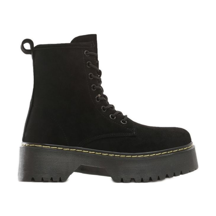 As botas são equipadas com uma plataforma forte e grossa de 5 cm de altura, que além de proporcionar estabilidade, acrescenta alguns centímetros de altura. O acabamento antiderrapante da sola permite pisar com segurança em diversas condições. Além disso, o interior macio e perfilado garante conforto mesmo quando usado por longos períodos de tempo.