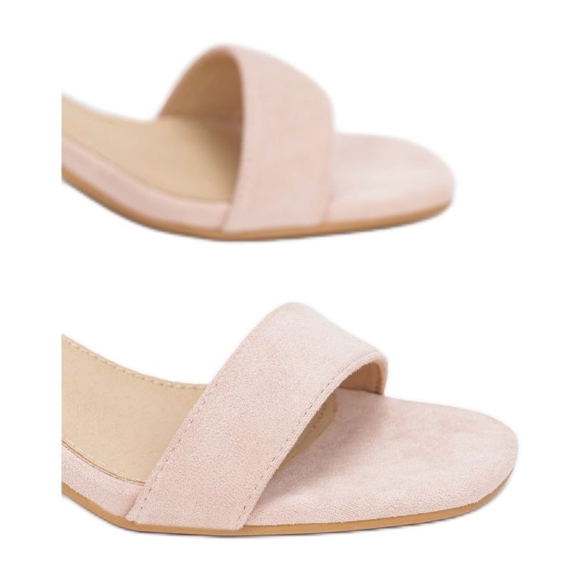 Feitas em camurça ecológica de alta qualidade, essas sandálias não são apenas elegantes, mas também ecologicamente corretas. O interior com acabamento em couro ecológico proporciona conforto adicional, e a cor rosa confere leveza e frescor, facilitando a combinação com vários estilos.