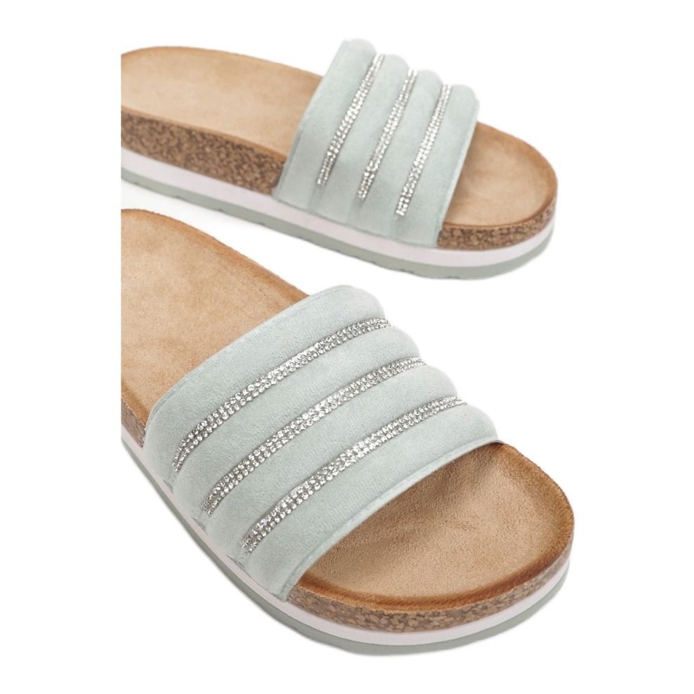 Os chinelos verdes Vices CM-2085-61 são a escolha perfeita para mulheres que procuram sapatos modernos e confortáveis para o dia a dia. Confeccionados em couro camurça ecológico de alta qualidade, proporcionam não só conforto de uso, mas também um visual elegante. Além disso, decorados com zircões e strass, conferem um caráter único a qualquer estilo.