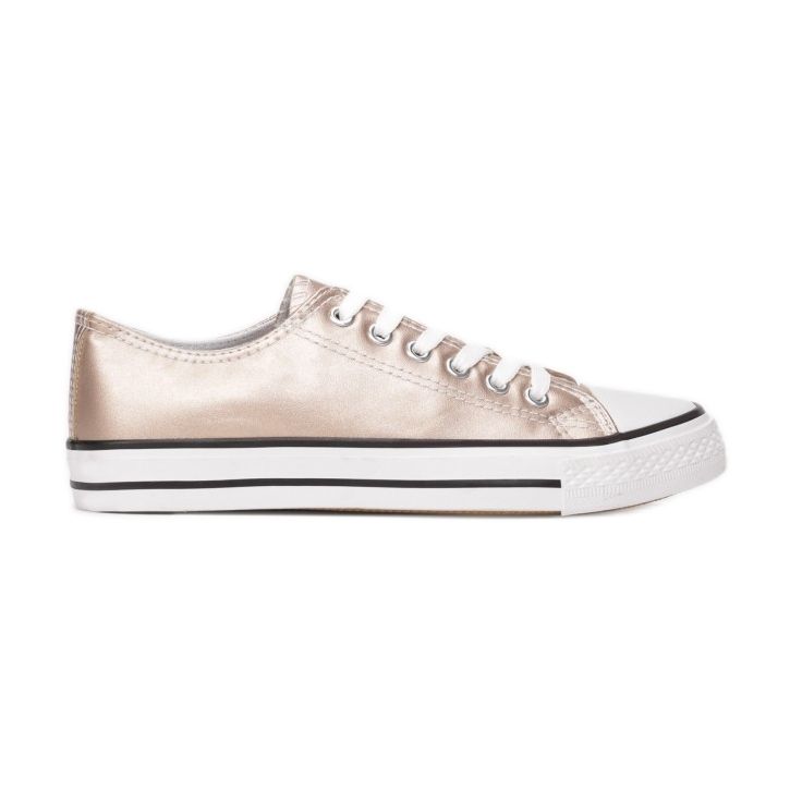 Descubra o que há de melhor na moda com os tênis Vices FG-2913-1-449 em ouro champanhe. Estes sapatos femininos combinam estilo e conforto, perfeitos para os dias de primavera e verão. Fabricados em couro ecológico de alta qualidade, têm um aspecto elegante graças ao seu atraente acabamento metálico.
