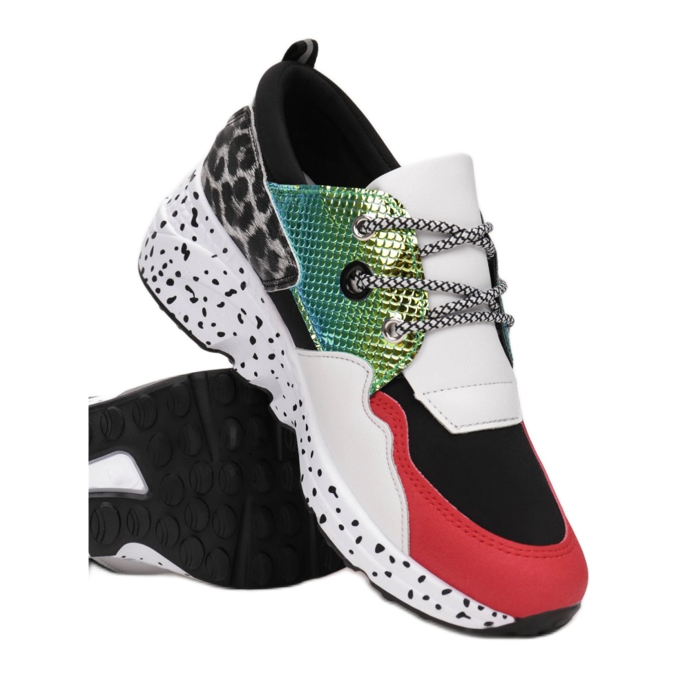 Apresentamos os calçados esportivos Vices FY-68-38 na cor preta com detalhes multicoloridos - a escolha ideal para mulheres ativas que valorizam conforto e design moderno. Estes sapatos baixos femininos da coleção Modne combinam funcionalidade e estilo, o que os torna perfeitos tanto para o treino como para o estilo do dia a dia.