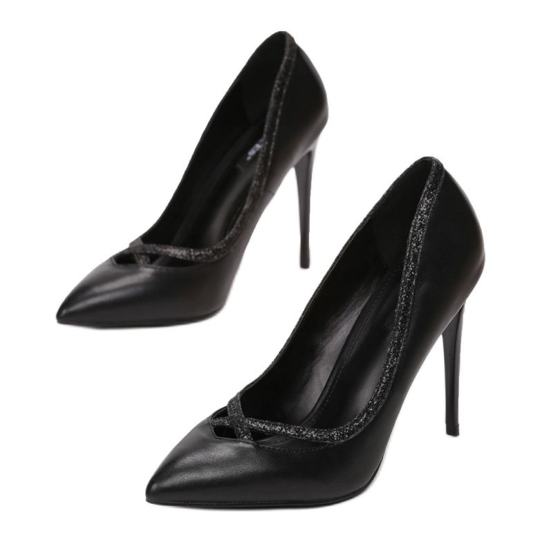 Os vices IT1-1 Black distinguem-se por uma biqueira clássica e pontiaguda, que alonga opticamente a perna e acrescenta elegância. A altura do salto de 10 cm faz com que os scarpins enfatizem perfeitamente a figura, agregando elegância e feminilidade. Graças ao fecho slip-on, calçar e tirar o calçado é extremamente fácil.