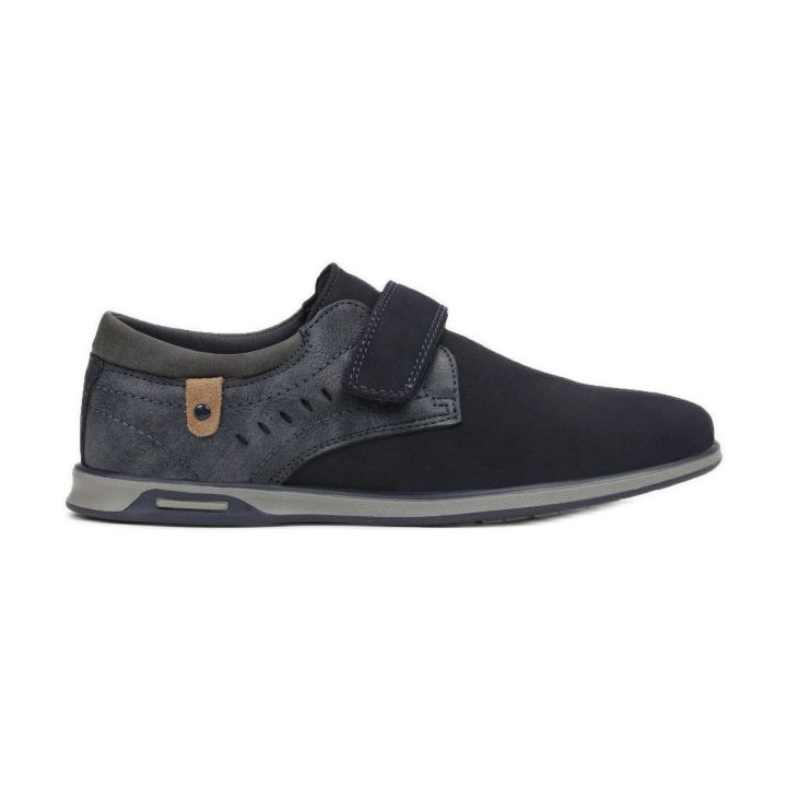 Descubra os maravilhosos sapatos Vices T56-96-93 na moda azul marinho e azul, que ficarão perfeitos no guarda-roupa de qualquer criança! Estes sapatos estilosos com velcro confortável são a escolha perfeita para meninos ativos que valorizam conforto e aparência moderna.