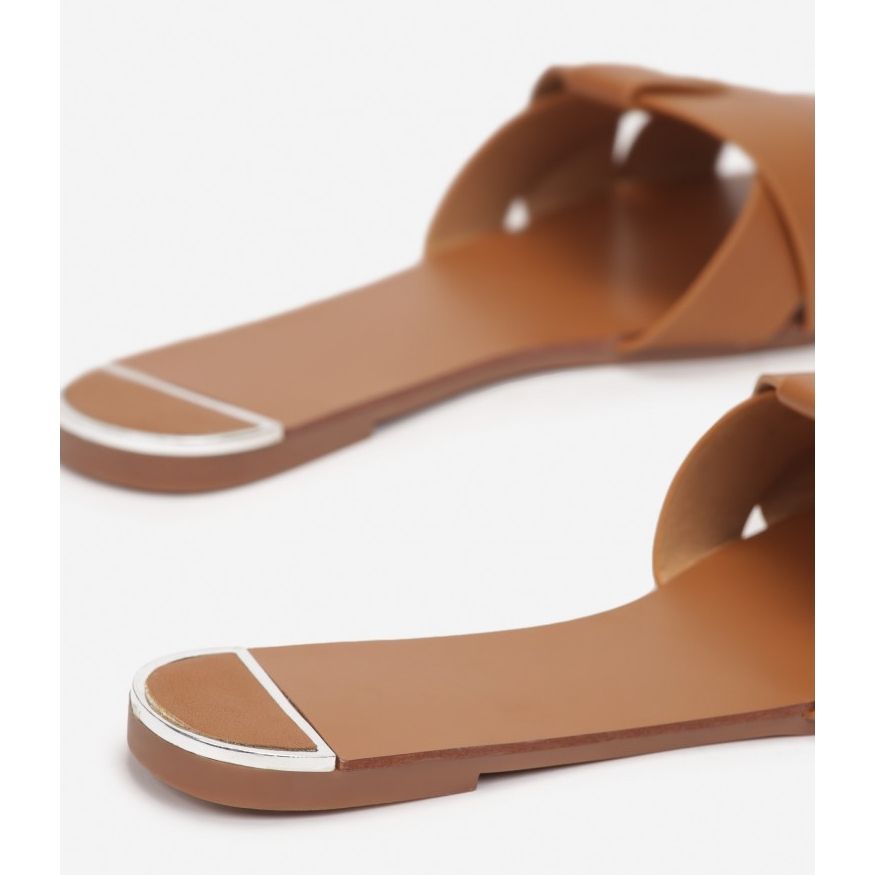 Descubra conforto e estilo com os chinelos Vices THS-38-68 na cor marrom. Estas elegantes mules slip-on são caracterizadas por tiras largas que envolvem suavemente os pés entre os dedos e a planta do pé, garantindo não apenas um conforto de uso excepcional, mas também um visual moderno. Graças à sola plana, os chinelos são perfeitos para o estilo do dia a dia, o que os torna uma escolha perfeita para os dias de verão.