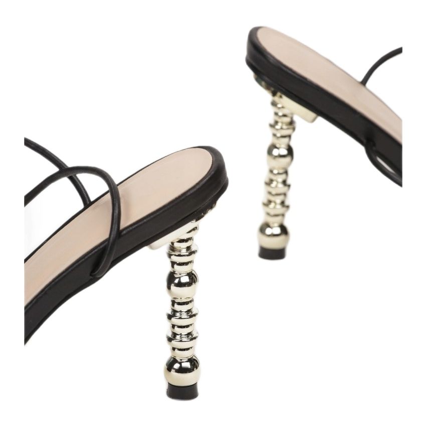 O design destes sapatos distingue-se pela ausência de biqueira, o que lhes confere leveza e um carácter moderno. O salto alto, de 8 cm de altura, destaca a figura e confere atratividade a cada passo. As sandálias são confeccionadas em couro ecológico de alta qualidade, o que as torna não só estéticas, mas também ecologicamente corretas.