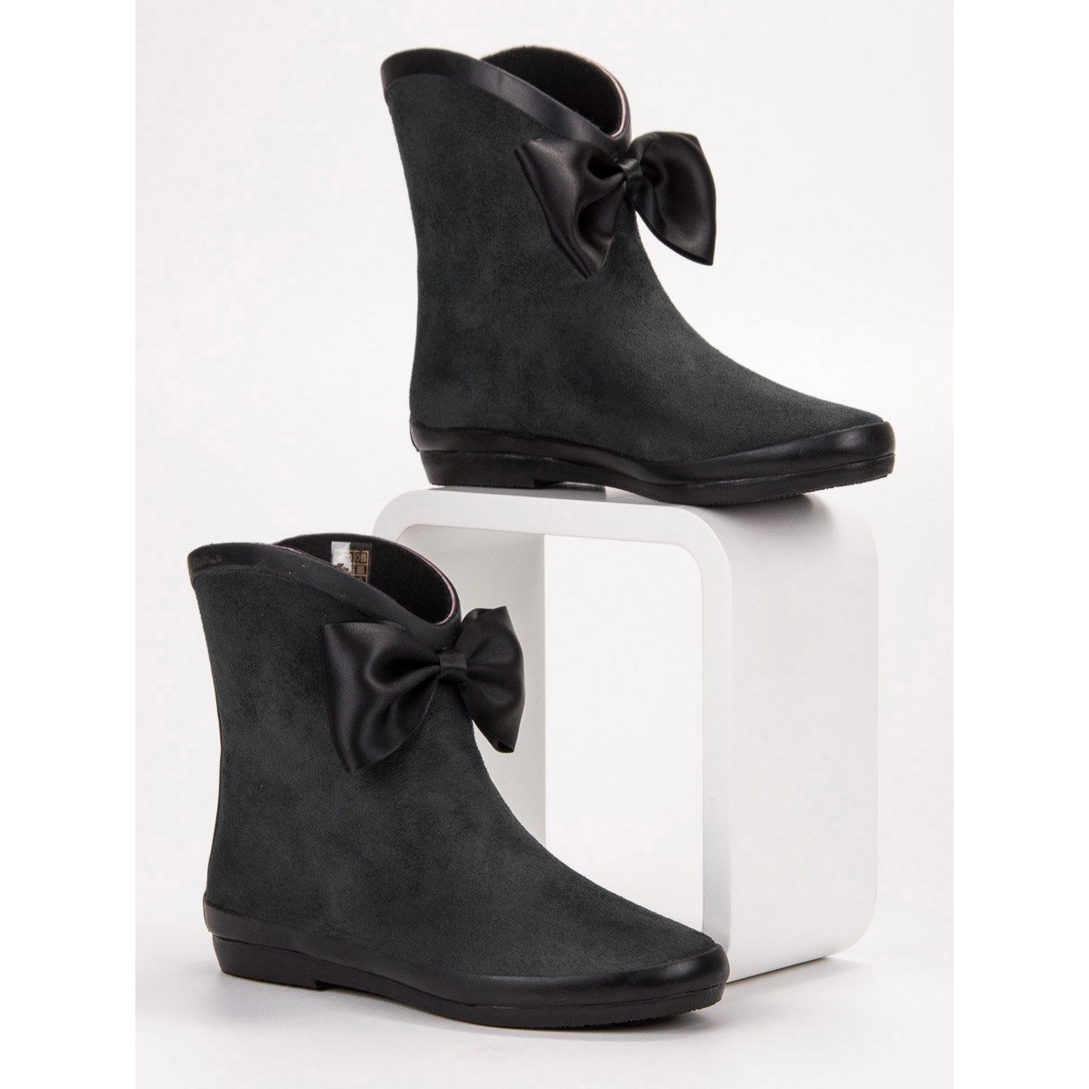 Detalhes: Kylie Wellies de camurça com um arco preto
