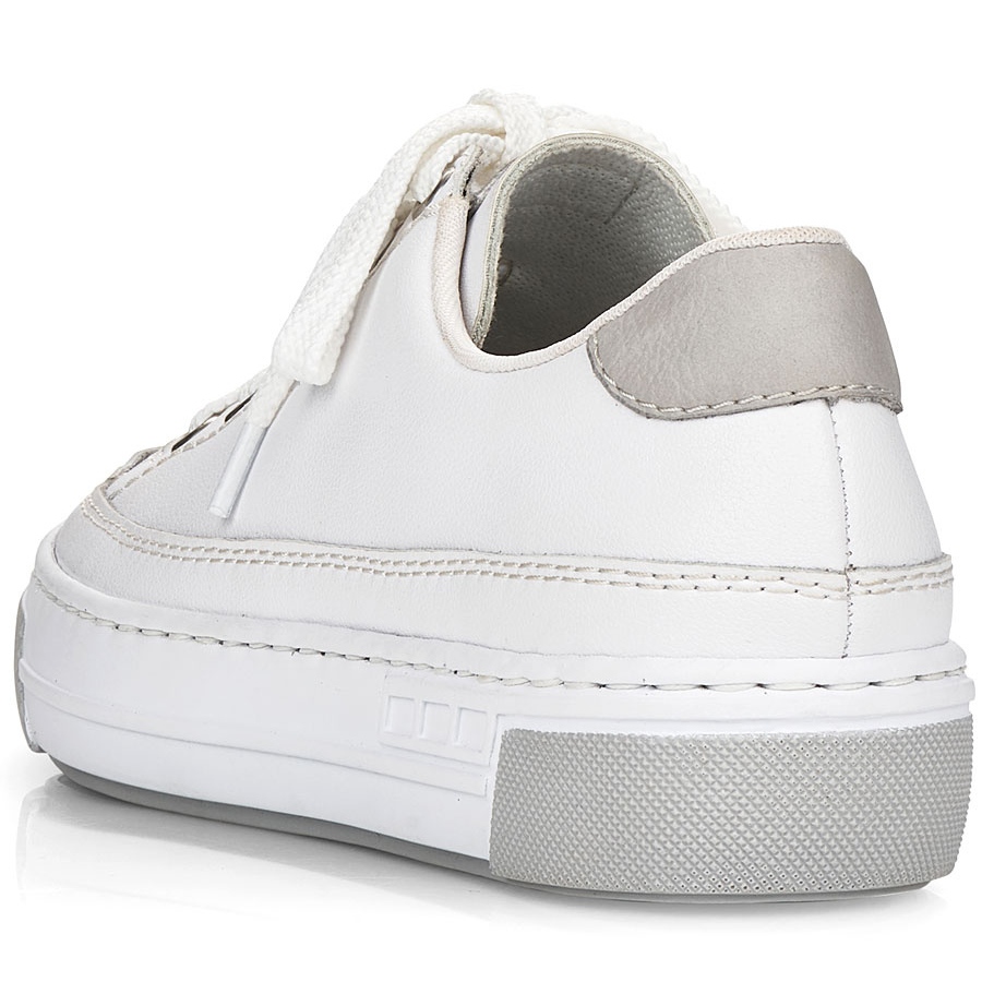 Detalhes: White Rieker L8847-80 Sapatos esportivos de couro feminino branco