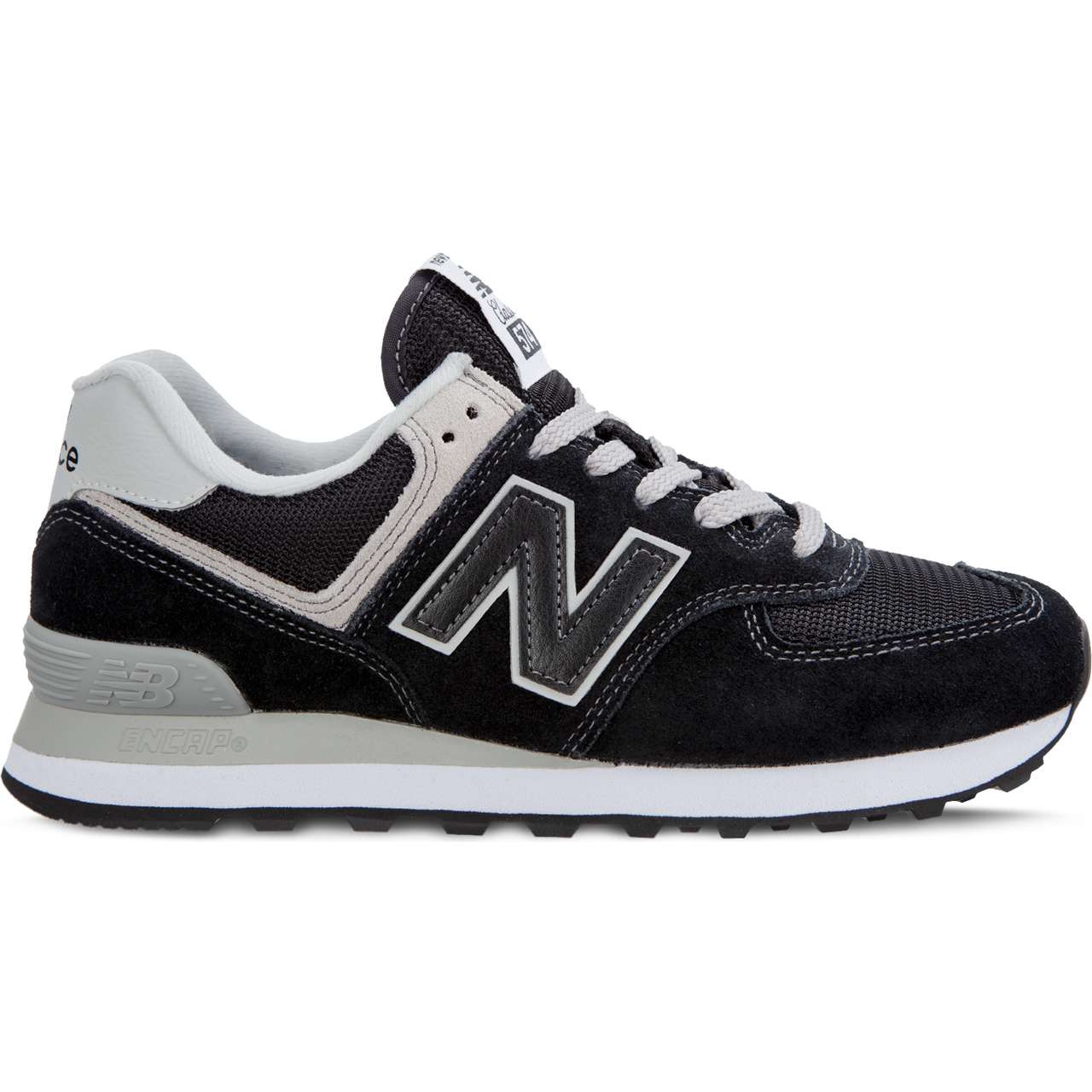 New Balance WL574EB Black With White - um clássico em preto com detalhes em branco, combinando um visual retrô com conforto moderno. O modelo da série 574 é inspirado no DNA running da marca: perfeito para uso diário, adequado tanto para estilos esportivos quanto casuais.