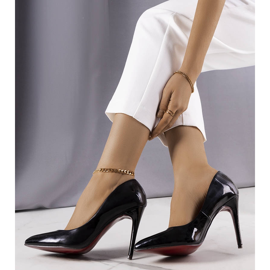 Descubra elegância e elegância com salto alto preto Zayd da PA1. Estas bombas exclusivas combinam a beleza clássica com o design moderno, tornando-as a escolha perfeita para qualquer ocasião. A parte superior revelando o tornozelo enfatiza a silhueta feminina, e o bico fino e pontudo alonga opticamente as pernas, acrescentando elegância e estilo.