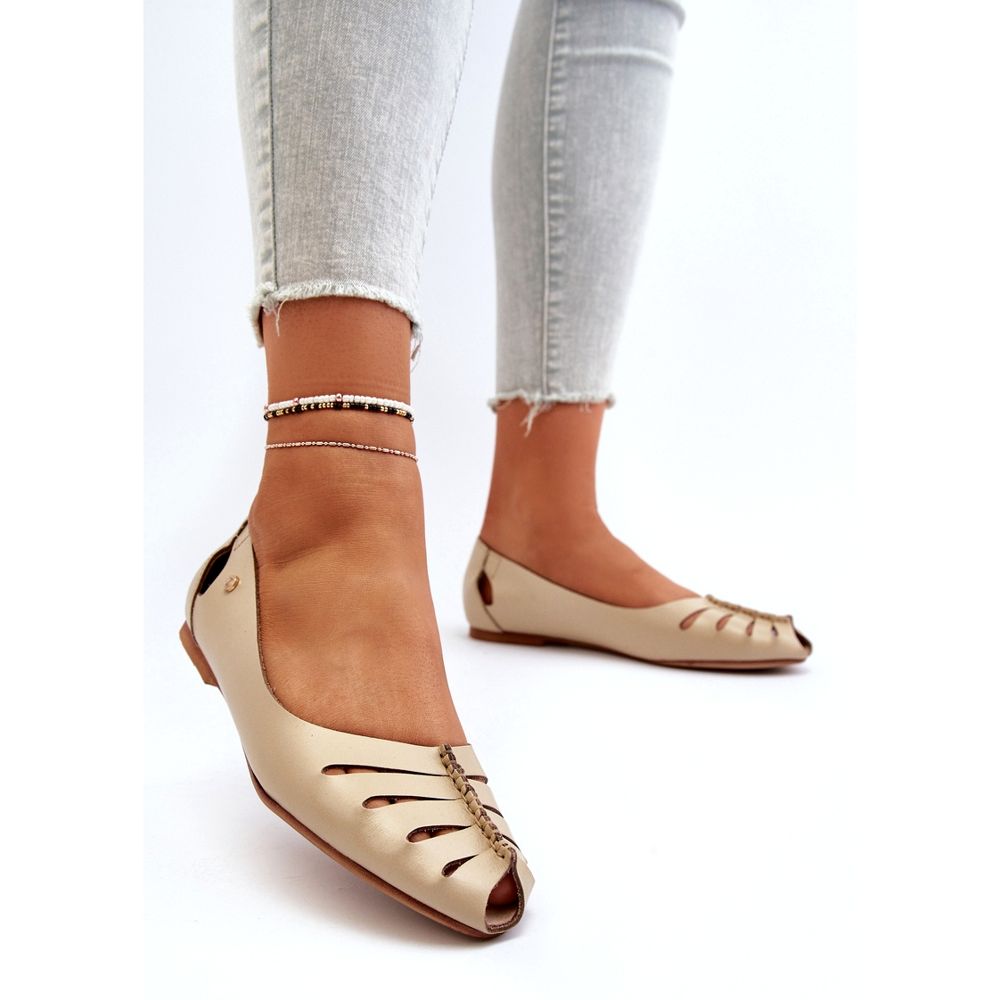 As bailarinas têm recortes sutis na frente e atrás da parte superior, o que lhes dá leveza e caráter aberto. A palmeira de couro cuidar do conforto dos pés, e um salto plano com uma altura de 1 cm garantirá a estabilidade a cada passo, o que os torna a escolha perfeita diariamente e para ocasiões elegantes.