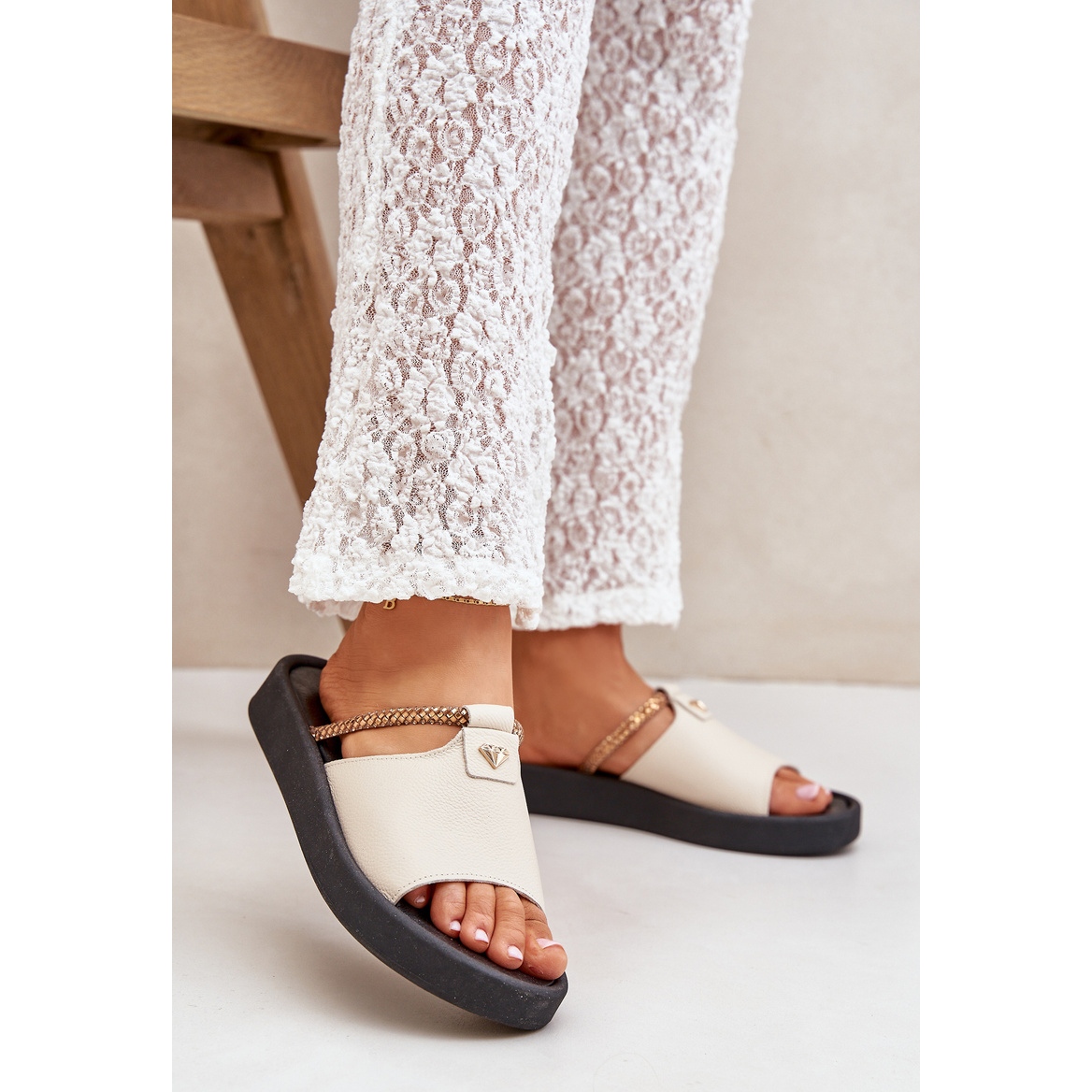 Zazoo Zazoo 2896 Slippers de couro feminino bege