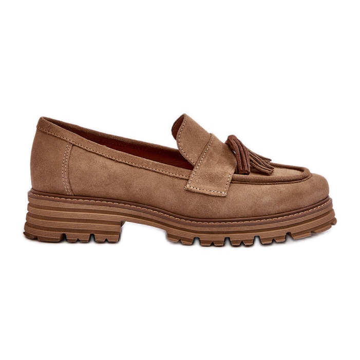 Detalhes: Zazoo 3469 Mocassins femininos de camurça com franjas, bege