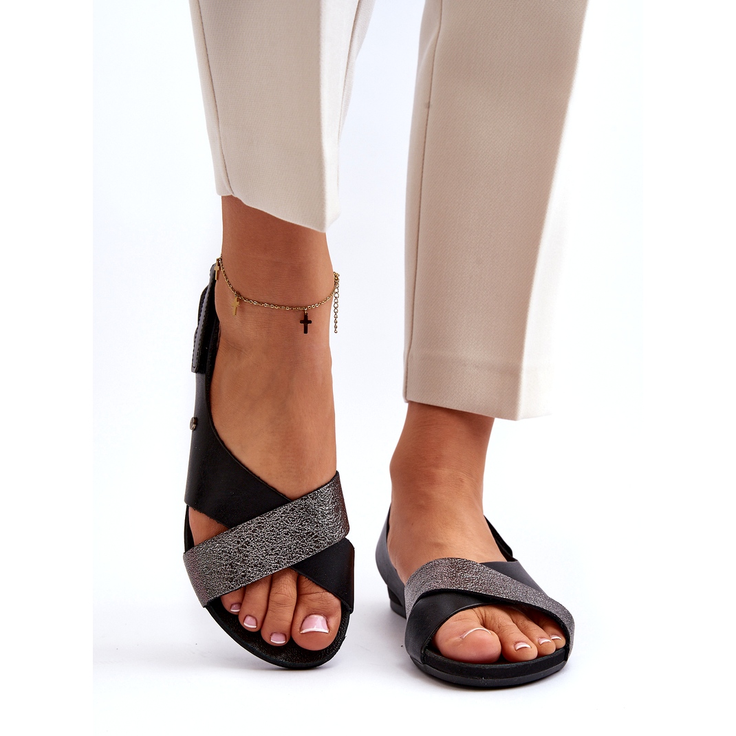 As sandálias de couro Zazoo 40141 têm um aspecto extremamente elegante graças ao seu design clássico enriquecido com elementos modernos. A cor preta está sempre na moda, e o destaque adicional na forma de um emblema prateado com o logotipo da marca confere personalidade ao modelo. Biqueiras e saltos abertos criam a composição perfeita para qualquer estilo de verão - do casual ao mais elegante.