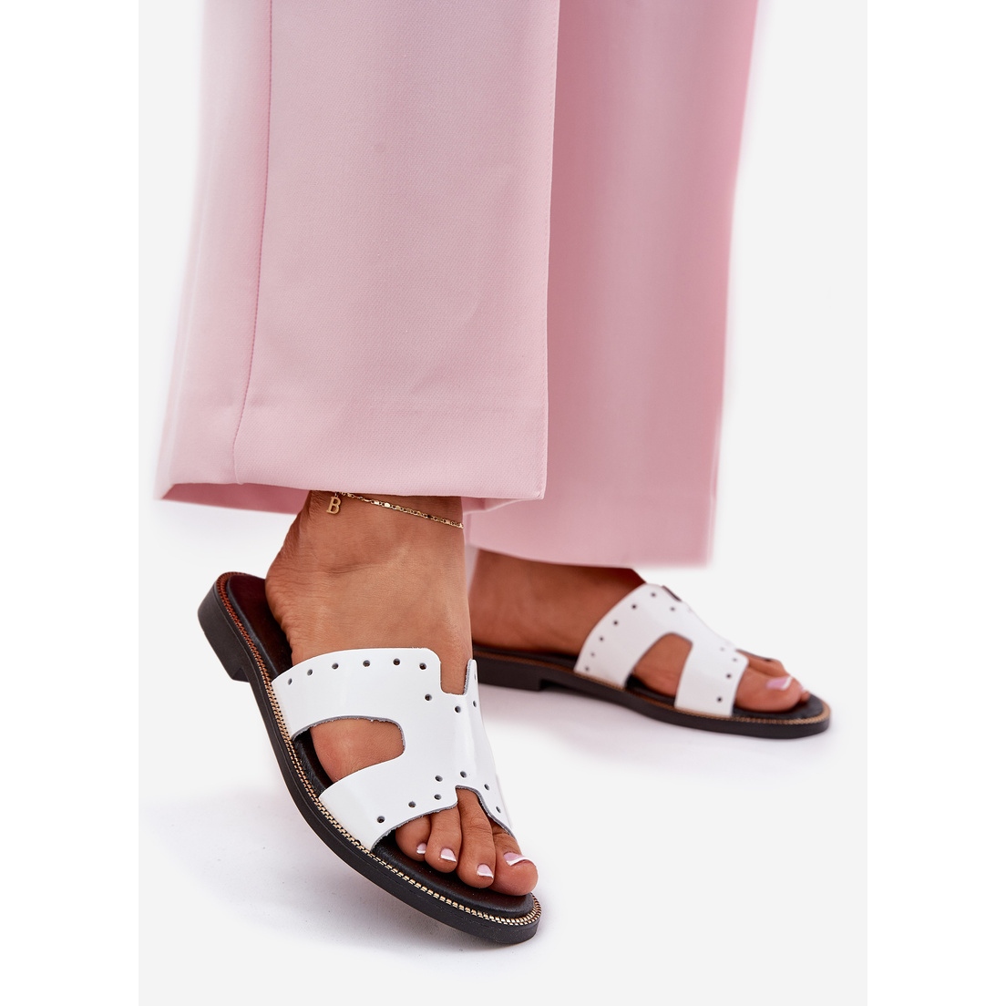 Descubra a elegância e a conveniência com o Zazoo 40326 feminino na cor branca clássica. Esses chinelos envernizados feitos de couro natural com recortes decorativos combinam estilo e conforto, o que os torna a escolha perfeita diariamente. Medicados em uma cabeceira plana com uma altura de 2 cm, eles proporcionam estabilidade e conforto ao usar, e uma inserção de couro macia faz com que você possa apreciá -los o dia todo.
