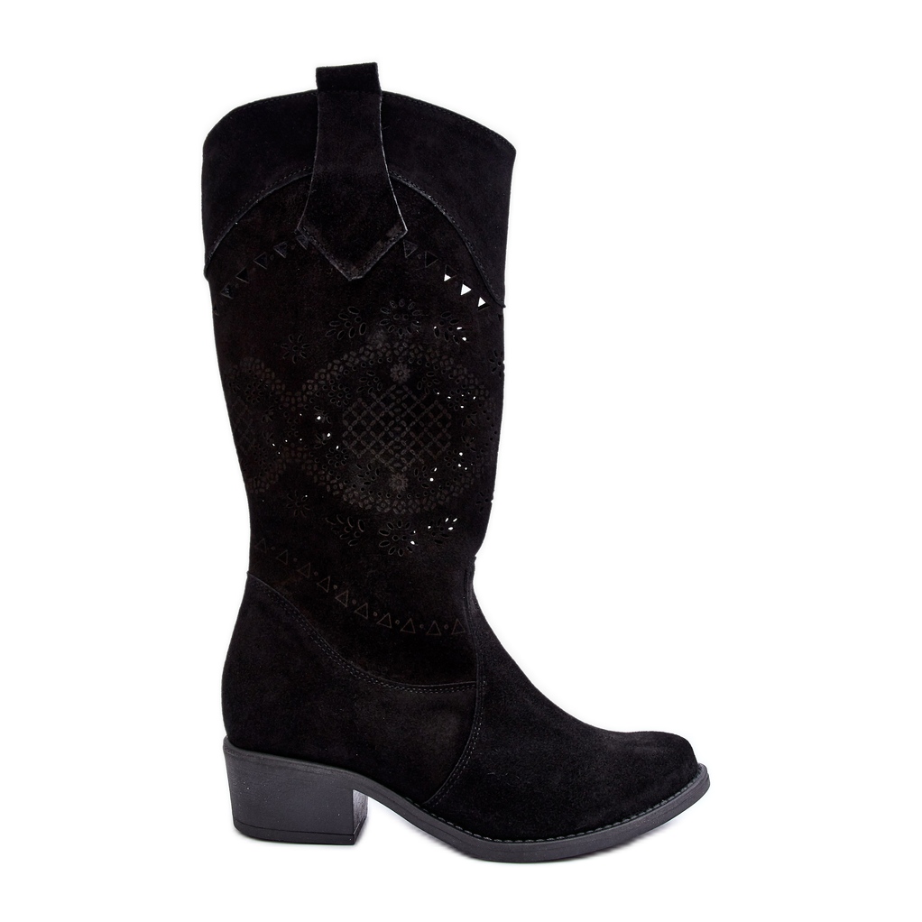 Zazoo Zazoo 4043 Botas de salto alto em camurça perfurada preto
